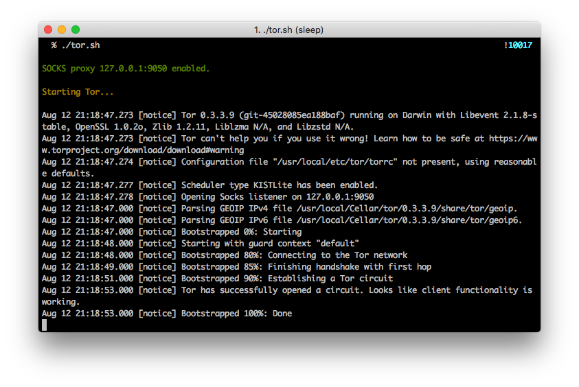아래는 tor.sh 스크립트를 실행한 화면입니다.