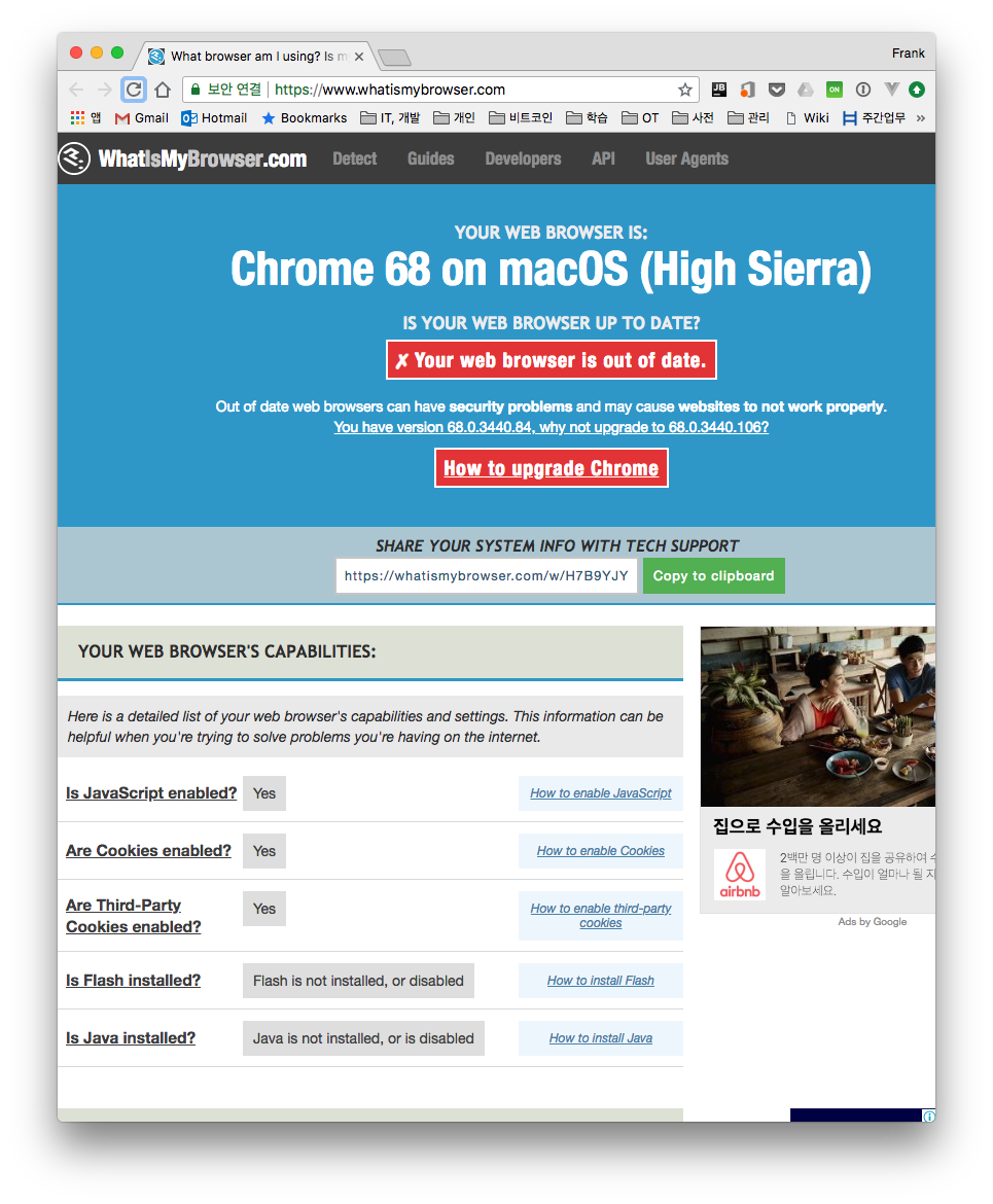 제 컴퓨터에서 크롬 브라우져로 위 사이트에 접속을 해보면, 맥 크롬 68 버전임을 알수 있습니다.