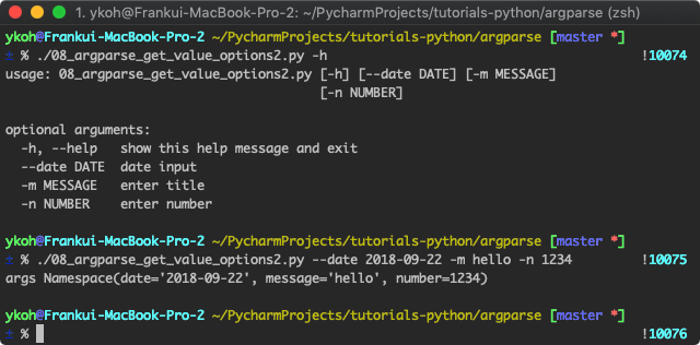 $ ./08_argparse_get_value_options2.py --date 2018-09-22 -m hello -n 1234