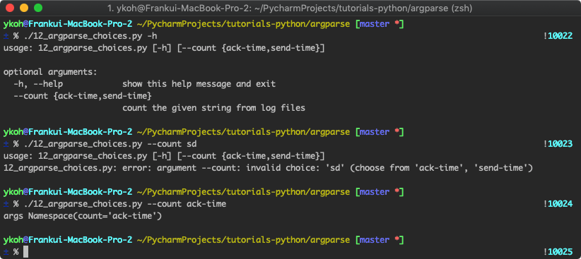 이런 옵션을 파이썬에서 구현하려면 어떻게 해야 할까요? 실제 구현한다면, 실행 명령어를 인자로 받아서 parse 하는 과정이 필요한다. 직접 구현하기는 좀 부담스럽죠. 셀이나 여러 언어에서 이런 부분들을 별도의 모듈로 제공한다. 파이썬에서는 커맨트parsing 라이브러리는 getopt, argparse, docopt가있다. 이 중에서 파이썬에서 많이 사용되는 argparse 를 알아보도록 하자.