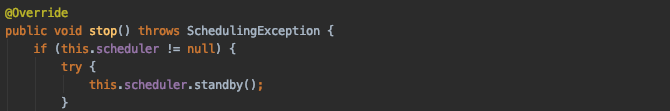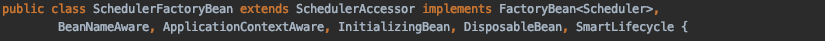 - Quartz 스케줄러는 스프링의 컨테이너의 빈 LifeCycle 관리에 의해서 scheduler관련 설정이 초기화, 시작, 종료가 된다