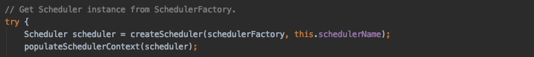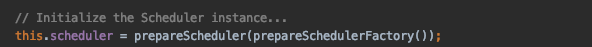 - prepareSchedulerFactory() 메서드는 SchedulerFactory 인스턴스인 StdSchedulerFactory를 반환해서 prepareScheduler() 인자로 넘겨주고 Scheduler instance를 초기화한다