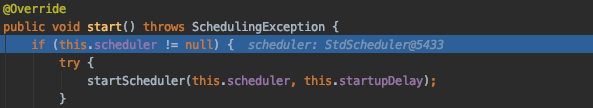 - 초기화한 Scheduler 인스턴스와 startUpDelay을 startScheduler() 메서드 인자 값로 넘겨준다