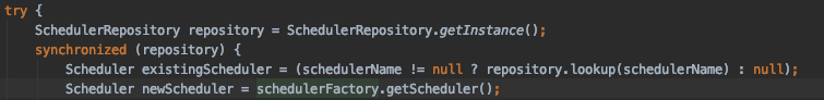 - 1.3 ==> Scheduler createScheduler(SchedulerFactory schedulerFactory, @Nullable String schedulerName)