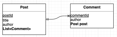 (2) 여기서 Comment 정보를 조회하면, Post에 대한 조회는 이미 끝난 상태라서 JOIN으로 쿼리가 생성이 안 됩니다. 단지 Post에 대한 정보 ID로 조회할 수밖에 없어서 where comment.postId=? 형식으로 JPQL 쿼리를 생성합니다. 이로 인해 매번 조회 쿼리가 생성이 되어 N 번 실행하는 이슈가 발생합니다.