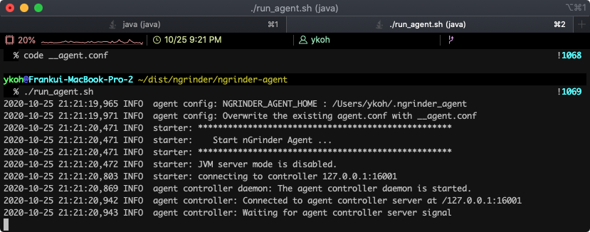agent을 아래 shell script로 실행한다. 이상없으면 컨트롤러에 등록이 된다.