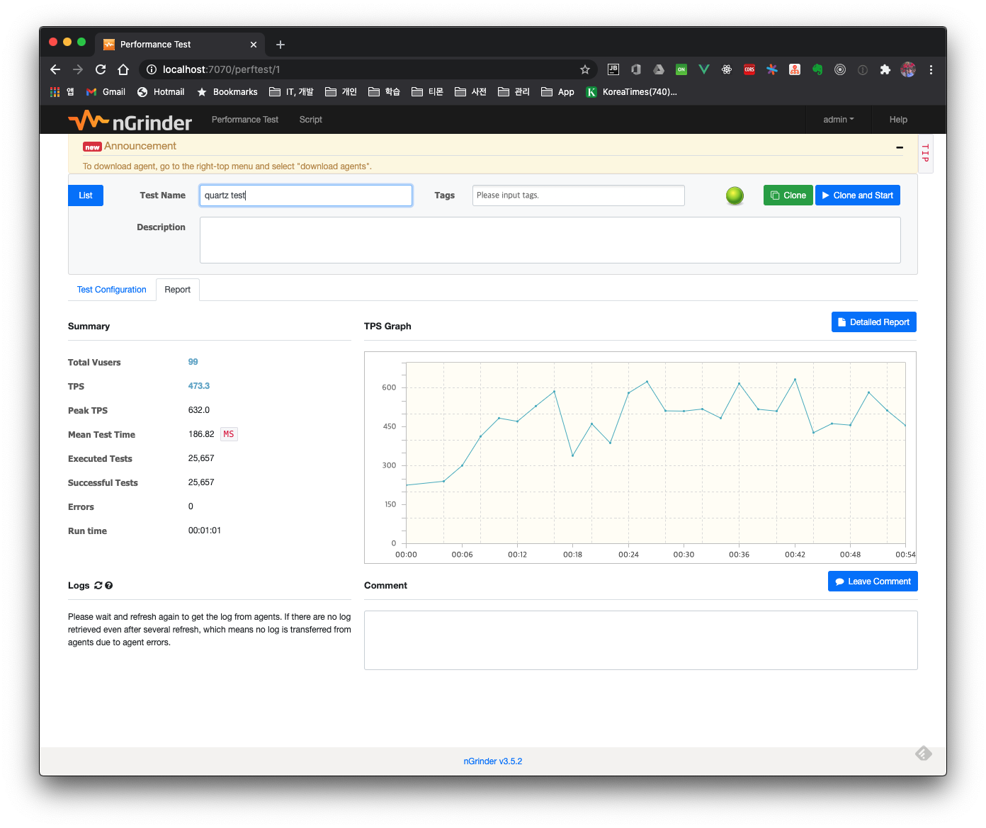 여기서는 간단하게 nGrinder 테스트 도구의 사용법에 대해서 알아보았다. 실제 개발하는 웹 애플리케이션의 성능을 개선하려고 한다면, 구체적인 테스트 시나리오와 코드 개선 전후로 테스트 결과를 확인하면서 점진적으로 코드를 개선해 나가야 한다. 기회 되면 API 성능 개선한 사례에 대해서 포스팅할 예정이다.