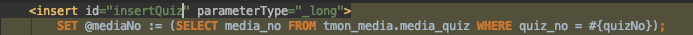 사용자 정의 변수를 저장할 때 사용합니다. 이 경우에는 SELECT로 구한 media_no 값을 mediaNo 변수에 저장합니다.