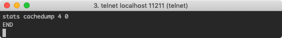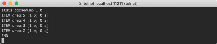 이 명령어는 Memcached 팀에서 지원하지 않는 기능으로 추후 버전에서 삭제될 수 있지만, 현재 1.5.12 버전에서는 존재한다.