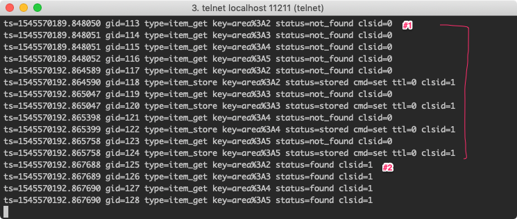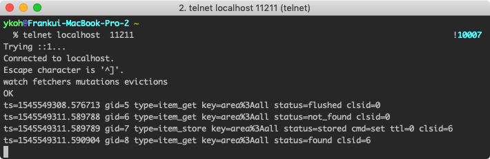 Memcached는 watch 명령어을 제공해서 캐시에 저장되거나 값을 얻어올 때 실시간으로 이벤트를 확인할 수 있다.